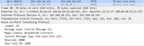 包40:客户端请求设置PPP协商,携带服务器的call id 1280