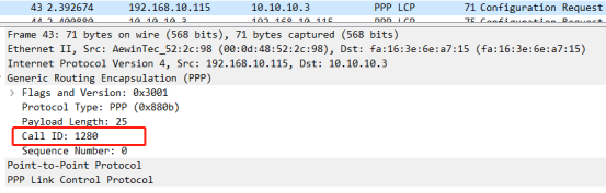 Call ID:由PPTP服务器指定的唯一的会话ID。主要用于在PPTP服务器与PPTP客户端建立的会话上,复用与解封装隧道包使用的。