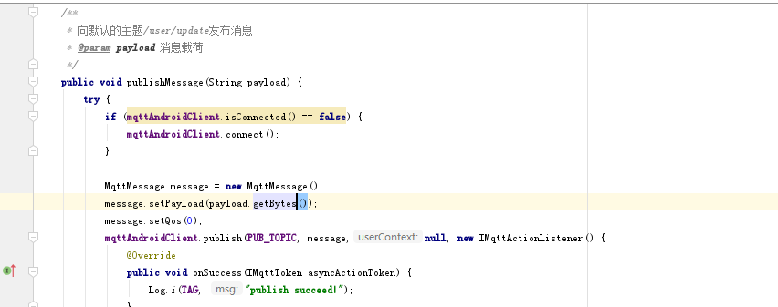 接下来创建一个MqttAndroidClient对象,设置回调接口,然后使用mqttConnectOptions调用connect方法,即可建立连接。