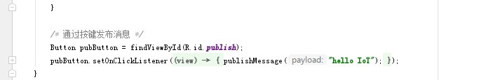 通过按键发布消息是在OnCreate里面,向阿里云平台发布一个消息“hello IoT”。
