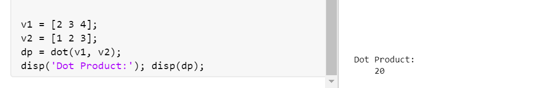 MATLAB 中两个向量的点积 a = (a1, a2, …, an) and b = (b1, b2, …, bn) 由以下给定: