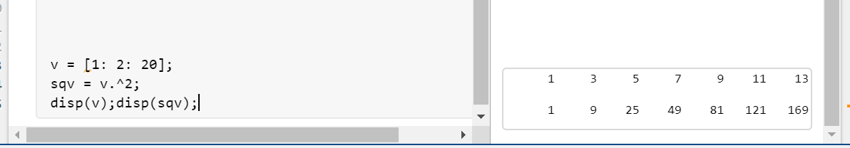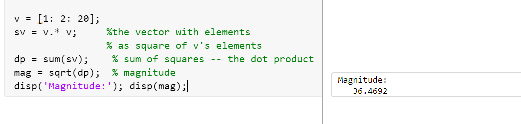 采取的矢量及自身的积,使用数组相乘(*)。这将产生一个向量sv,其元素是向量的元素的平方和V.