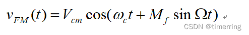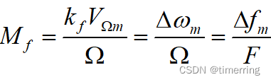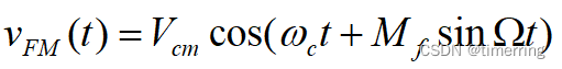 表示调频波的载波频率随着调制信号的振幅变化,其中Mf为调频指数,表示调频波在单一频率上受调制的程度,也就是: