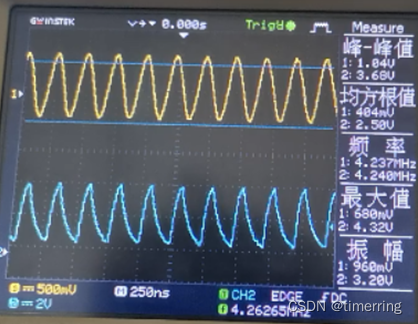 先不断降低频率,直到再次锁定,由下图可知频率为4.36MHz