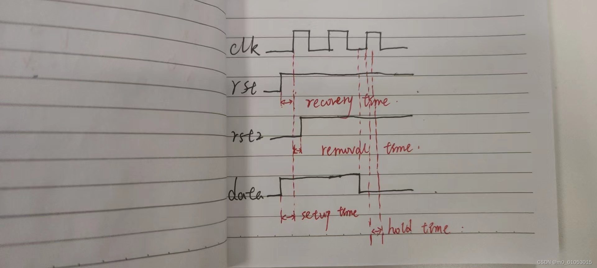 2、setup/hold/recovery/removal time 名词解释 并画图实例。
