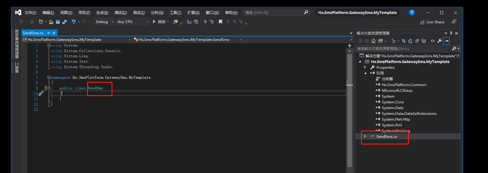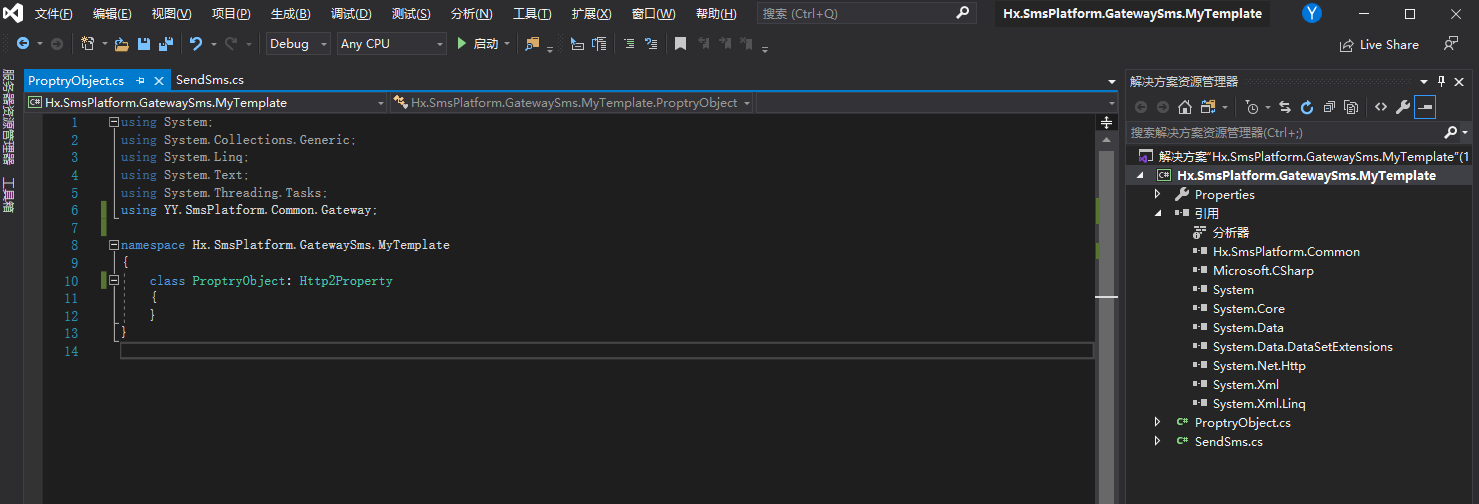 该主题是针对SendGateway模块,如果需要接入新的第三方通道,则需要开发一套相应的模板。并注册到系统中,才能正常使用。Hx.SmsPlatform.Common.dll该程序集文件中,包含了开始模板时所需的相关类型与接口。