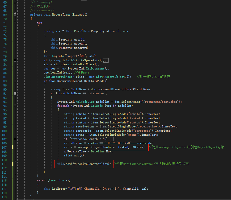ReceiveReport在接收到状态报告时触发该事件。