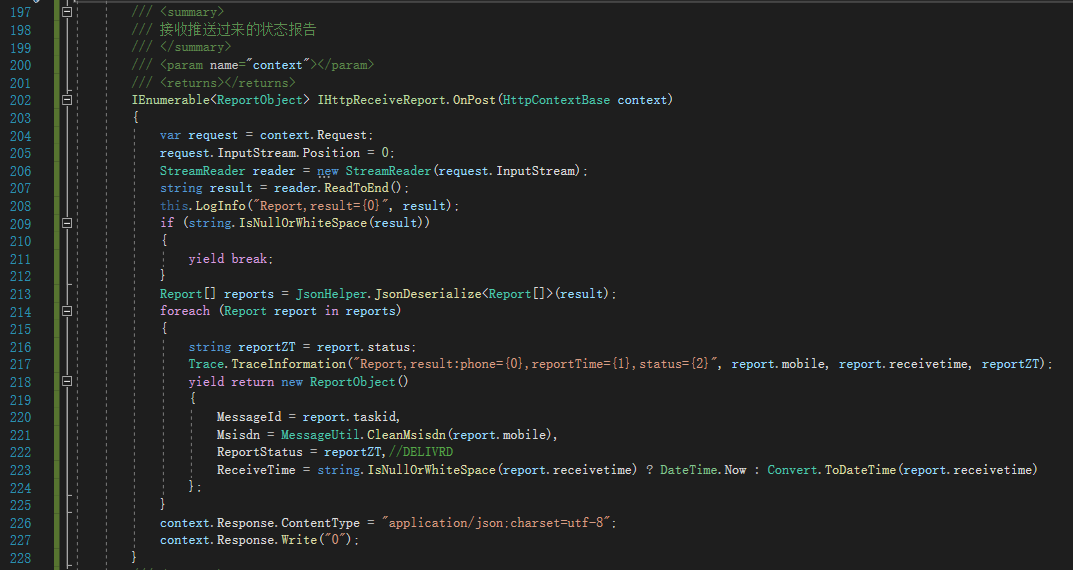 注:OnPost中,请不要引用SendSms的对象成员,因为成员并未初始化,可能会导致意外的行为,在发布时,应该在Hx.SmsPlatform.ReceiveMoReport的bin目录下,放一份该模板的程序集文件。
