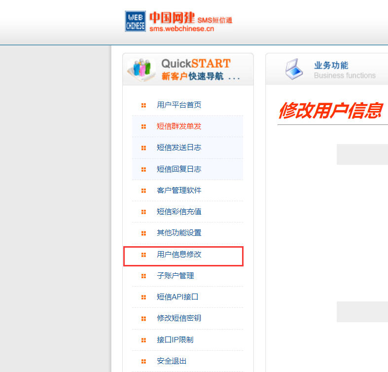 修改短信签名的步骤:【用户信息修改】>【修改用户信息】>【保存信息】,如图: