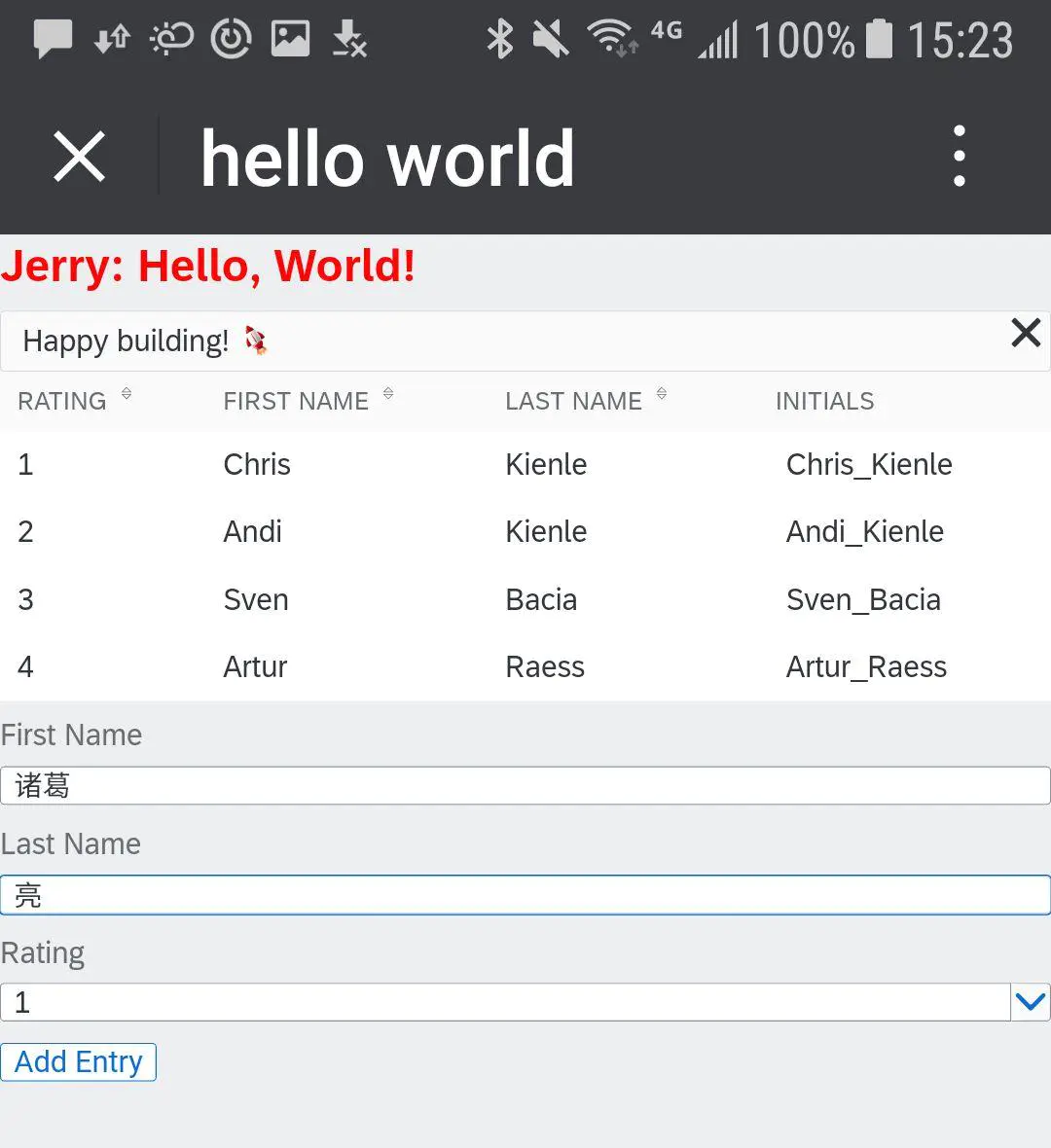 这个使用 Vue 组件开发而成的具有 Fiori UX 风格的应用运行时效果,在手机查看如下图所示: