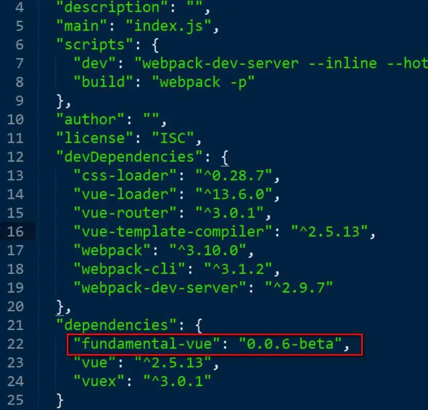 安装完毕后在 package.json 里能够看到 fundamental-vue 还在 beta 版,