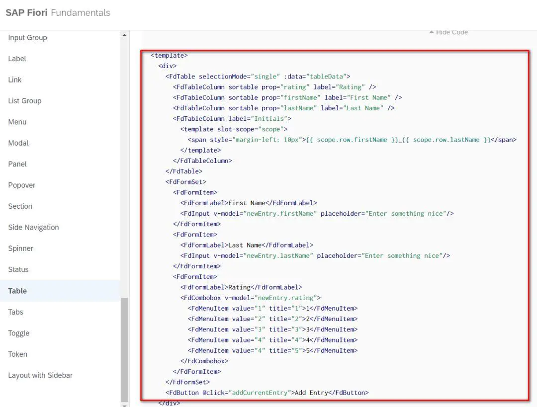 - 下面这个链接罗列了 SAP Fiori Fundamentals 里支持的 Vue 组件,同时也介绍了如何自定义一个新的 Vue 组件。