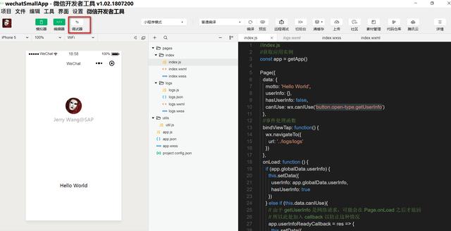 这个教程的前两篇文章,介绍了如何用下图所示的微信开发者工具自动生成一个Hello World的微信小程序,并讲解了这个自动生成的微信小程序的视图开发原理。
