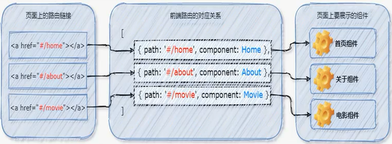 在浏览器中,点击链接实现导航的方式,叫做声明式导航。例如: