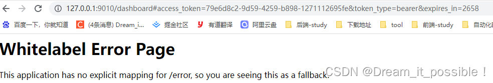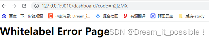 登录成功后会在地址栏上返回一个code,每次申请的code只能使用一次, 由于我没有配置/dashboard页面,因此会报404的错误: