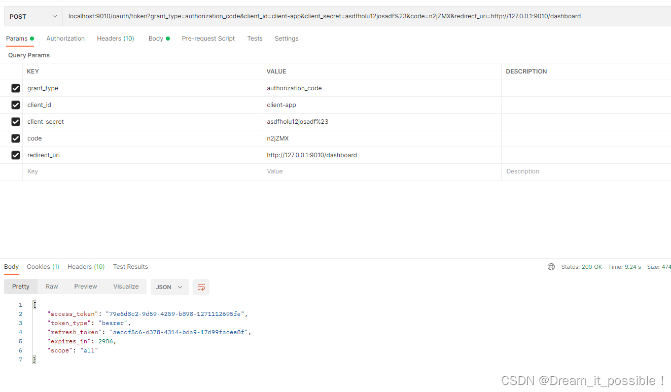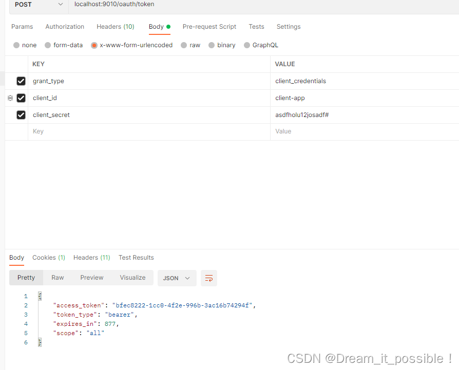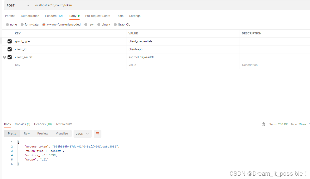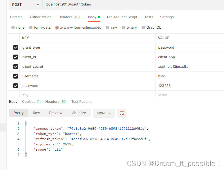 用postman请求localhost:9010/oauth/token, body里的参数为: