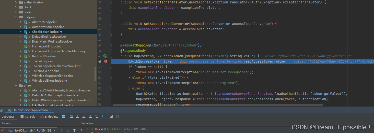 /oauth/check_token接口在org.springframework.security.oauth2.provider.endpoint包里的CheckTokenEndpoint类里,请求方式get和post都可以,可以看到需要一个token参数