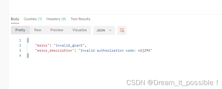 再次用同样的code去请求就会报错:Invalid authorization code: n2jZMX,必须重新访问/oauth/authorize重新申请一个新的code才行。