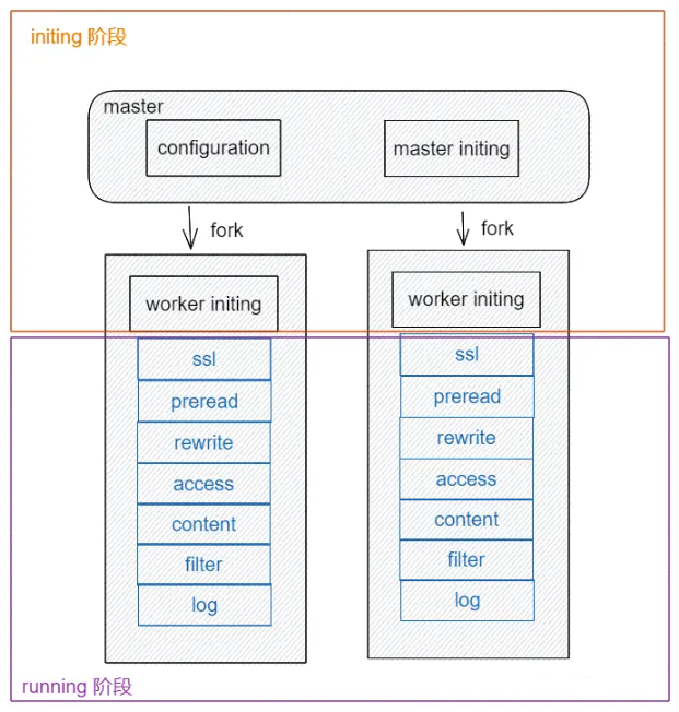 OpenResty 主要关注的是 initing 和 running 这两个阶段,并做了更细致的划分