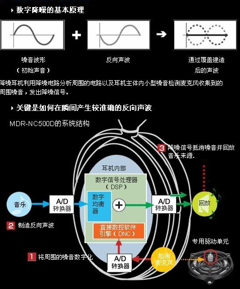 最近在研究耳机,看到主动降噪技术感到非常的新奇于是研究了一番。原理就是耳机在播放声音的时候采集周围噪音并输出相反的声波来抵消噪音。