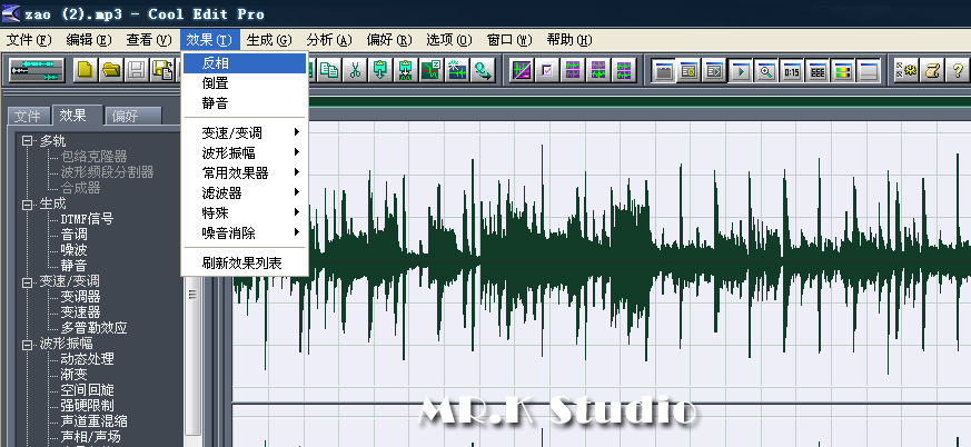 混缩好以后,到噪音(第2音轨)音轨里面将噪音全部做反相处理,就是做出相反的声波。