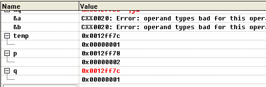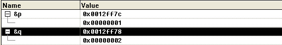 可以看到p和q交换了地址,但最后函数执行完后的结果又如下所示