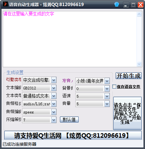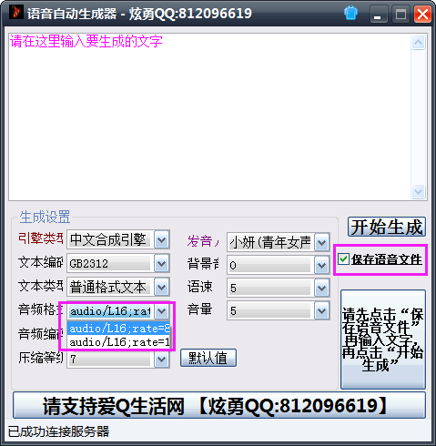 注意音频格式选择第1个,其他保持默认值,然后记得点击“保存语音文件”;