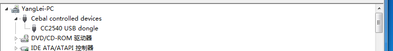 1.将USB dongle插入电脑,在电脑的设备管理器里面可以看到CC2540 USB dongle,没有的话,就需要安装驱动,过程不述。