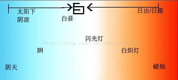 本文转载wzwxiaozheng的白平衡算法,主要包括两部分:色温曲线和色温计算。原文http://blog.csdn.net/wzwxiaozheng/article/details/38434391 1,白平衡算法---色温曲线 本文大体讲解了白平衡的算法流程,适用于想了解和学习白平衡原理的筒子们. 一般情况下要实现AWB算法需要专业的图像和算法基础,本文力图通过多图的方式,深入浅出,降低初学者理解上的门槛,让大家都理解到白平衡算法流程. 看到这里还在继续往下瞄的同学,一定知道了色温的概念,并且知道sensor原始图像中的白色如果不经AWB处理,在高色温(如阴天)下偏蓝,低色温下偏黄,如宾馆里的床头灯(WHY!OTZ) (如下图).