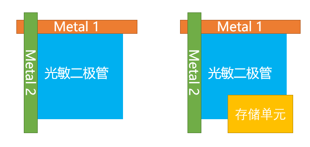 之所以Global Shutter能够做到全局曝光,跟Rolling Shutter相比,主要是Global Shutter在每一个像素上都增加了一个存储单元,才使得所有的像素能够同时曝光。