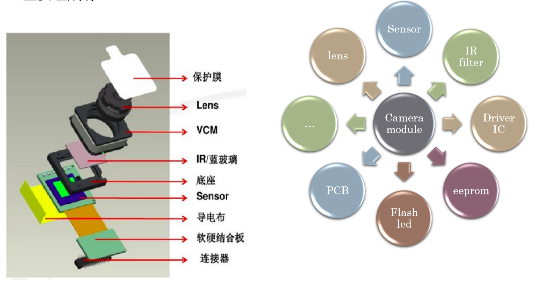 camera 模组主要组成部分为: