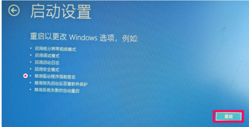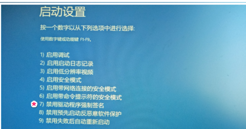 - 在启动设置窗口中,我们看到了禁用驱动程序强制签名,但在这个界面是无法点击来设置的,点击:重启,重新启动计算机;在启动设置窗口中的第7项是:禁用驱动程序强制签名,我们按下键盘上的【7】;