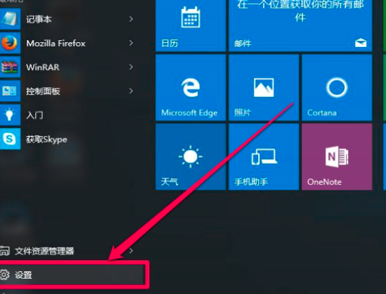 - 先在Win10的桌面打开任务栏左下角“开始” 图标,选择其中的“设置”。