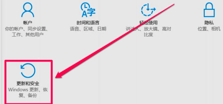 - 进入设置窗口,找到“更新与安全”这一项,打开。