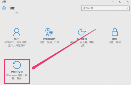 2、进入设置窗口,找到“更新与安全”这一项,打开,当时我找了很久,也没发现这个“更新与安全”项,后来才发现,原来要拉到滚动条才能看到,这一项在最下面,哈,再聪明的人,也有犯糊涂的时候,主要是Win10系统的滚动条颜色很淡,根本很难看清。