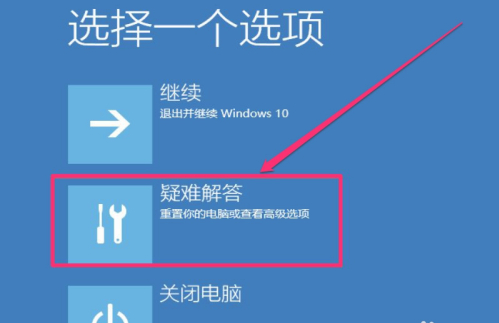 4、按了立即重启按钮后,进入一个蓝色的窗口,这里有一些选项,有继续,疑难解答,关闭电脑,因为系统版本不同,可能选项会有些不同,但是选择都一样,都必须选择“疑难解答”这一项,选择这项,才能在重启电脑时,进入高级设置窗口。