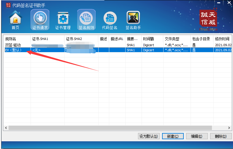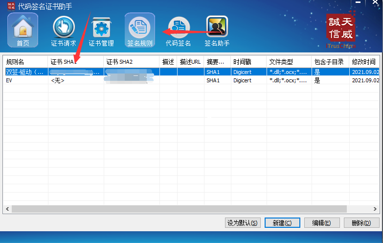 3.点击签名规则 新建2个规则