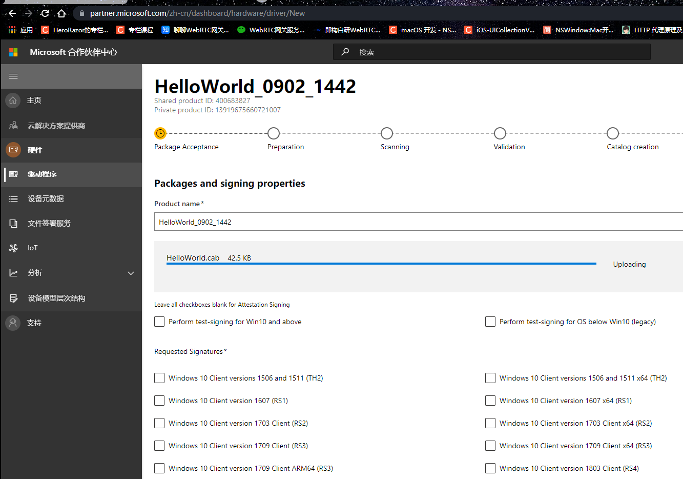 选择刚刚生成cab文件,勾选所有的x64,然后点提交,最后等待下载