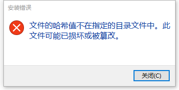 报错:文件的哈希值不在指定的目录文件中