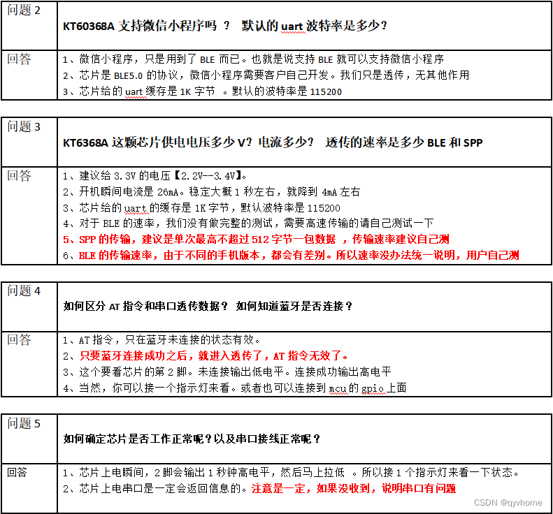 | 问题21 | 目前我们测试KT6368A的性能都不错,但是现在想加快数据的传输,MTU或者超过20字节的包长度 |