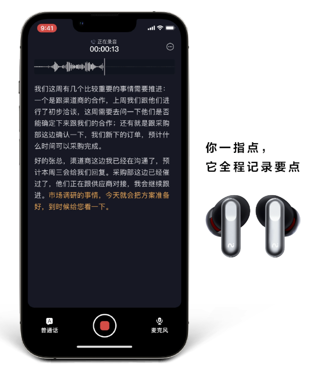 其次,随时随地应付突发情况。当你在一个线上会议上,突然领导或客户一个紧急电话来了,如果想立即录一下音,拿起手机打开APP显然已经落后半拍,这时iFLYBUDS Pro有一个一键闪录功能会比较贴心。