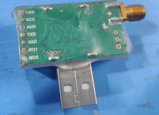 433模块需成对使用,上图中用于连接小车部分的接收模块,故至焊接TX(发送)引脚,且MD0直接接至对地敷铜(GND)是将无线模块的工作模式切换至透传模式,两个模块的MD0均是这般操作