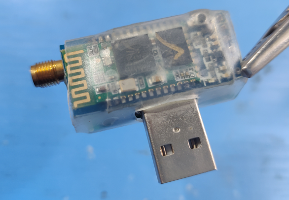 7、发送端接线,蓝牙模块的TX/RX与433模块的TX/RX错开连接,即TX连接RX,在USB取5v供电,这样便携式的就完成了,直接插电脑即可