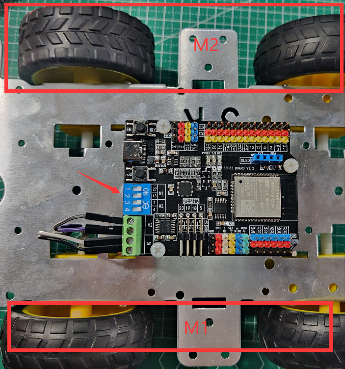 ESP32主板:主控制器,自带2路电机驱动,免去了额外增加驱动模块环节的接线部分