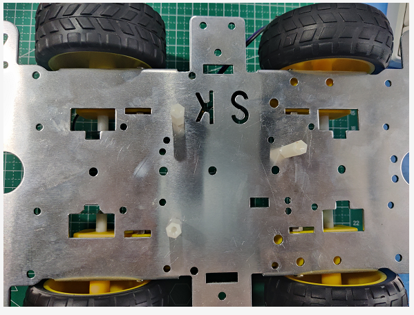 1、安装四个电机,并同边电机对角连线
