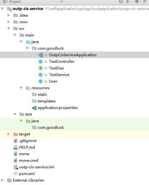 5.添加测试类TestController,TestDao,TestService,User
