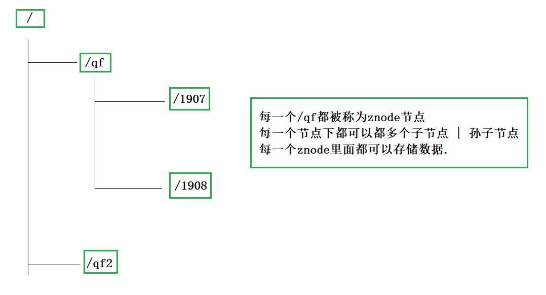 Zookeeper非常类似于一个文件系统,它的每个节点都叫数据节点(znode),znode节点上可以存储数据,也可以再产生多个子节点。 Zookeeper的节点不能称为目录或者文件,要叫做znode节点,既可以存储数据又可以产生子节点。