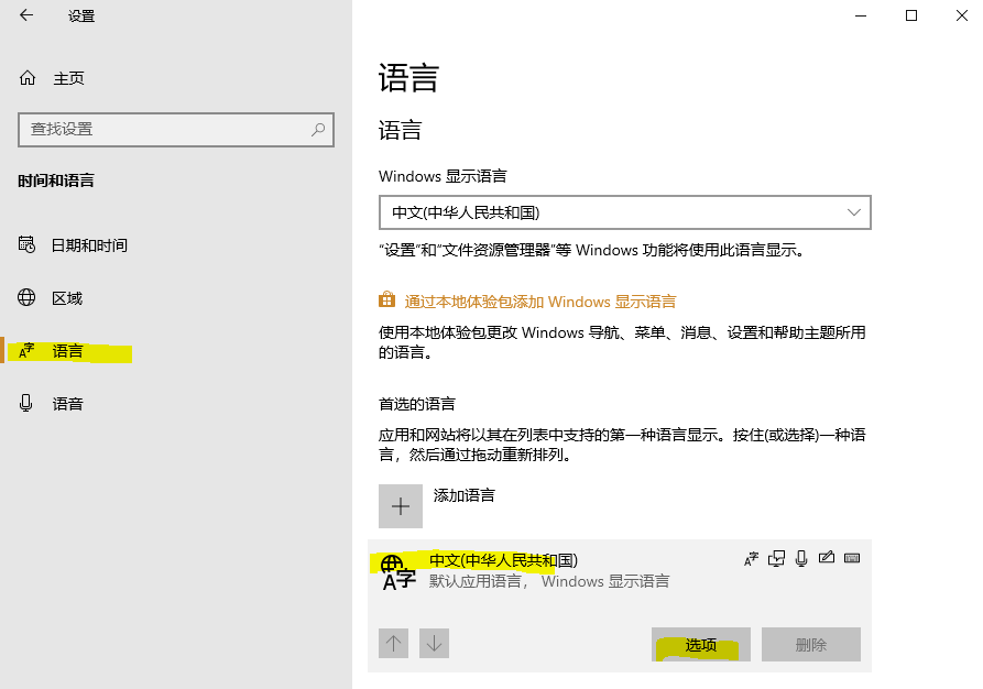 2、中文(中华人民共和国)(点一下)->选项->微软输入法(点一下)->选项