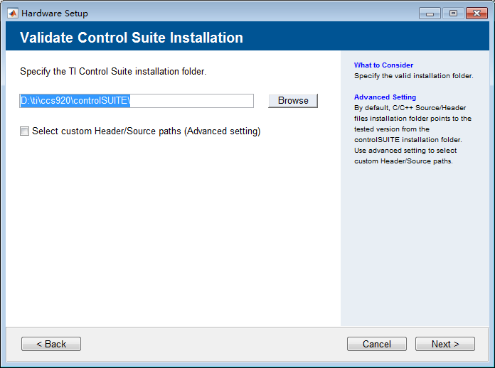 确认路径为ControlSUITE安装目录,点击 Next。