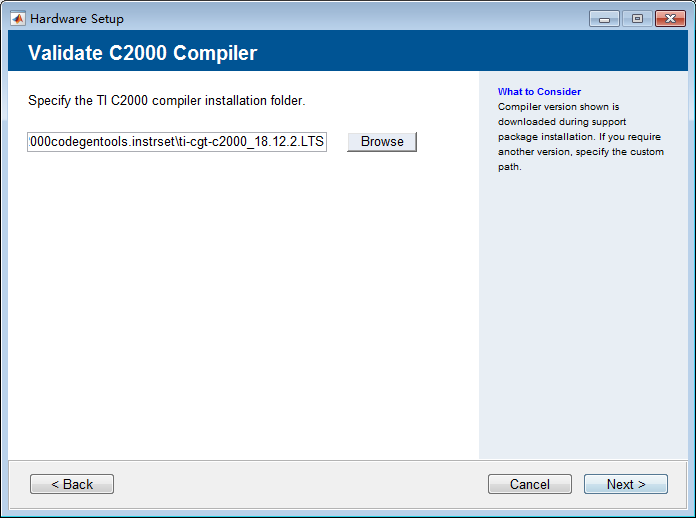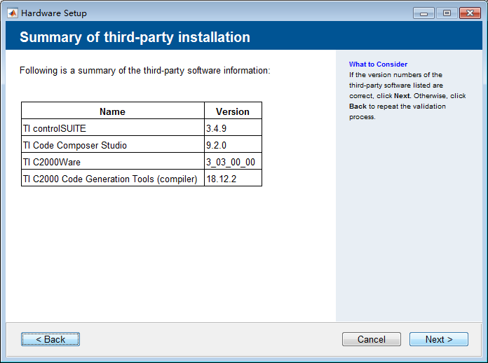 Matlab将自动检测到ccs的编译器版本,点击Next。
